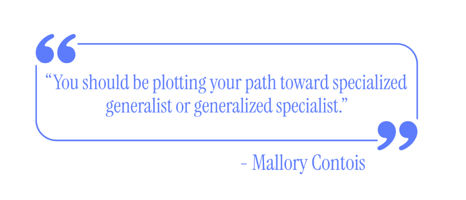 I loved Mallory Contois’s (Founder at Old Girls Club and VP Growth at Maven) quote on a recent LinkedIn Post: You should be plotting your path toward specialized generalist or generalized specialist.